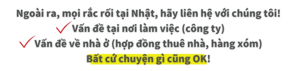 Tư vấn bằng tiếng Việt!Chúng tôi luôn đồng hành và hỗ trợ bạn trong cuộc sống và công việc tại Nhật Bản.